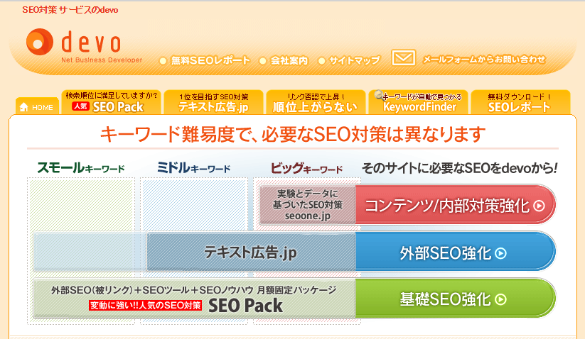 ディーボは、SEO対策を技術面、運用面から研究。SEO対策は自社で行うべきという持論を持ち、現在はSEO対策のためのツールやサービスを開発し提供してくれる会社です。